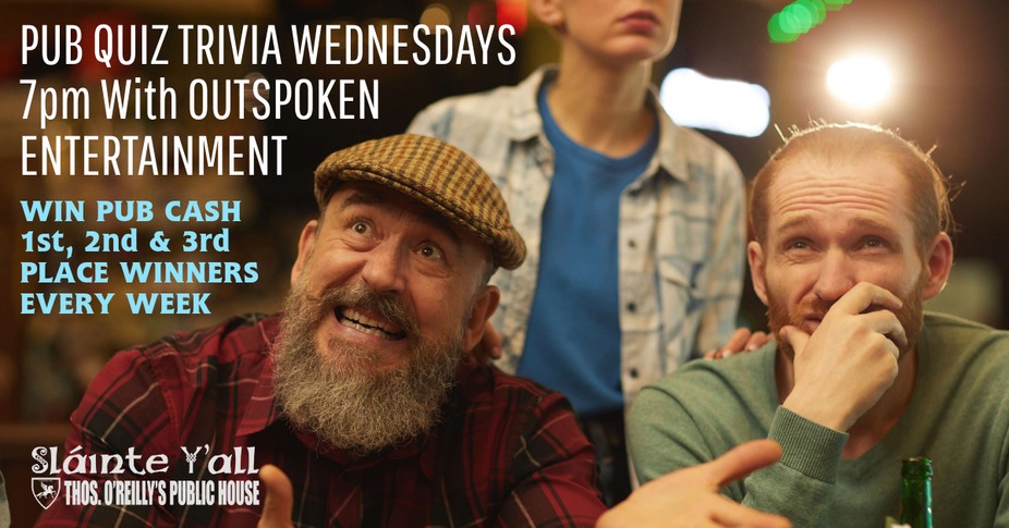 Every Wednesday at 7pm. Bring your smartest friends and even the questionable ones! Win Pub Cash for 1st, 2nd & 3rd Place teams!